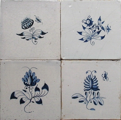 2. Hälfte 18. Jahrhundert; vier verschiedene Hirtenszenen; im kleinen Doppelkreis; blau; Eckmotiv: Spinne; alle ca. 13,0 x 13,0 x 0,8 cm |