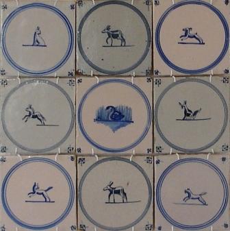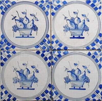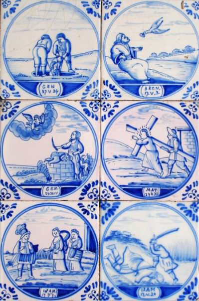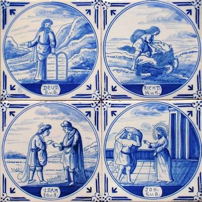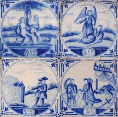 Harlingen, 1890 - 1920; vier biblische Motive; blau; Eckmotiv: Ochsenkopf mit geraden Linien: |