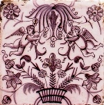 putti (angels) in floral ornament; purple; probably Harlingen or