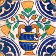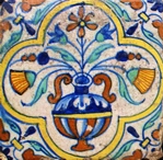 When the painting was finished, the tile was baked once again at a temperature of 900°C. The heat caused special colours to amalgamate with the melted tin overglaze.