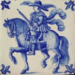 Horseman with rifle, so called large rider; blue; corner motif lily; Harlingen or Utrecht; since 1880 (approx. 1900), adapted from the horsemen of the period from 1700 to 1750; 13,1 x 13,1 x 0,8 cm |