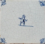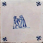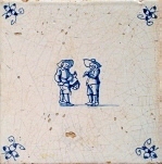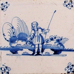 Gerne bildeten die Fliesenmaler auch spielende Kinder ab, die in Holland als künstlerisches Motiv eine lange Tradition besitzen. Auf Fliesen wurden solche Szenen im 17., 18., aber auch im 19. Jahrhundert gemalt, wobei vorwiegend entweder ein Kind zu sehen ist oder zwei Kinder dargestellt werden, und zwar jeweils fast immer in blauer Bemalung. |