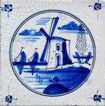 Holländermühle im kleinen Doppelkreis; blau; Eckmotiv: Spinne; Makkum,