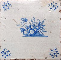 and flowers; blue; corner motif: spider; 13,3 x 13,3 x 0,9 cm