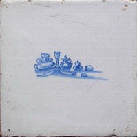 cm / Still life: meal with pot and glass ("breakfest"); blue; without corner motif; 12,8 x 12,8 x